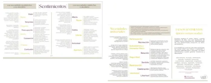 Listado de sentimientos y necesidades.
