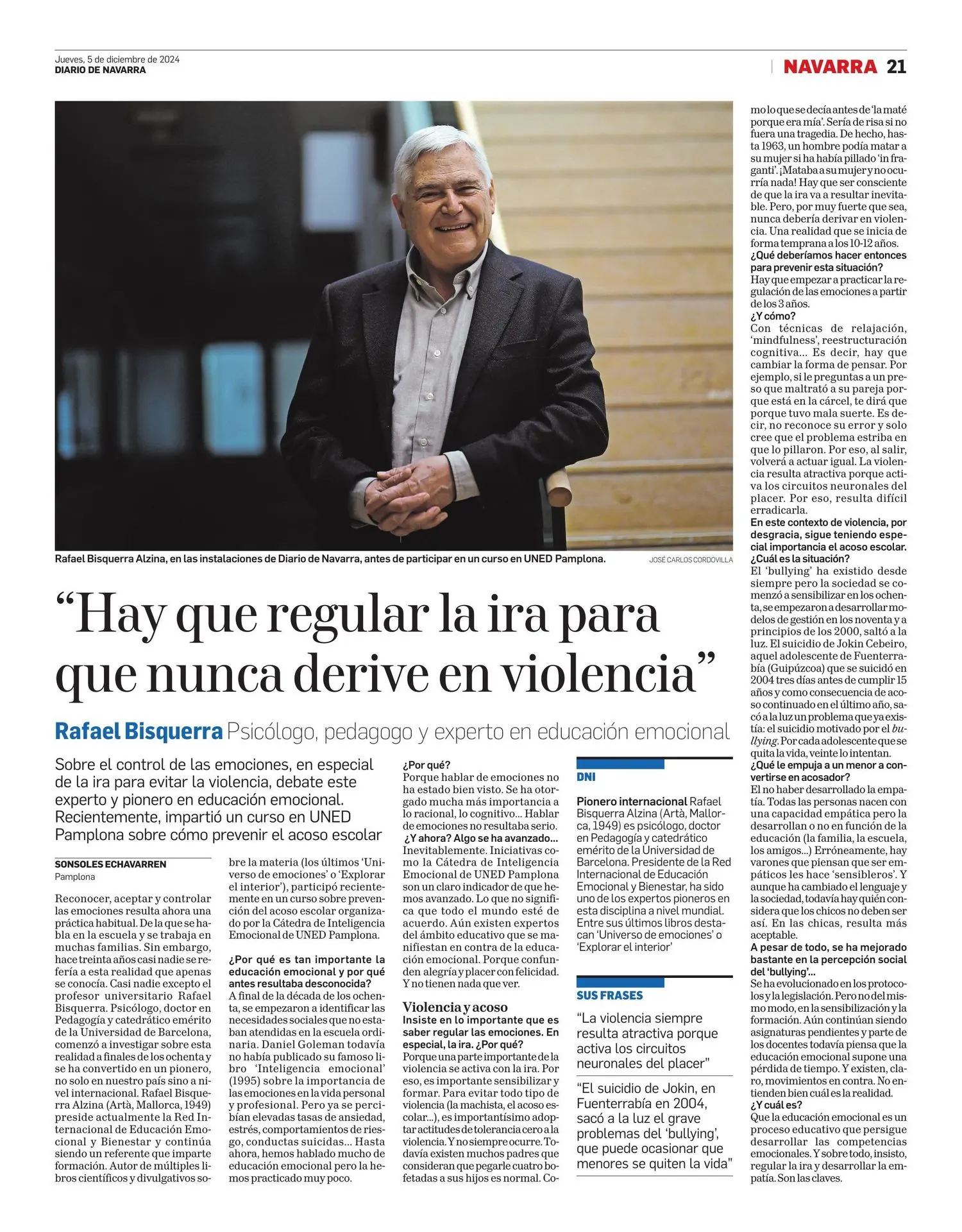 Entrevista al Dr. Rafael Bisquerra en el Diario de Navarra el día 5 de Diciembre de 2024.