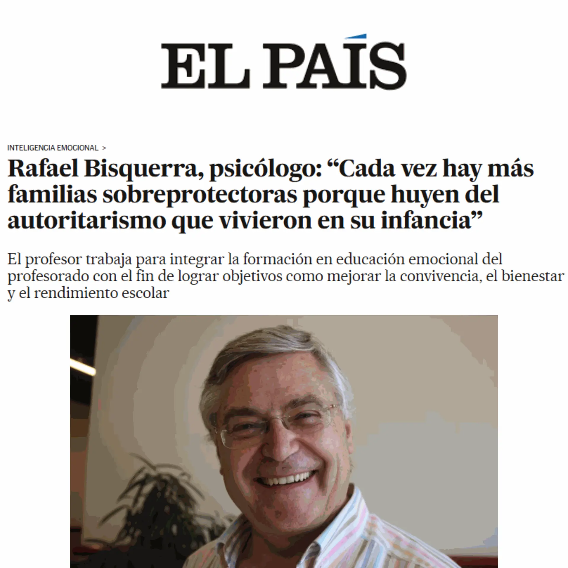 Rafael Bisquerra, psicólogo: “Cada vez hay más familias sobreprotectoras porque huyen del autoritarismo que vivieron en su infancia”